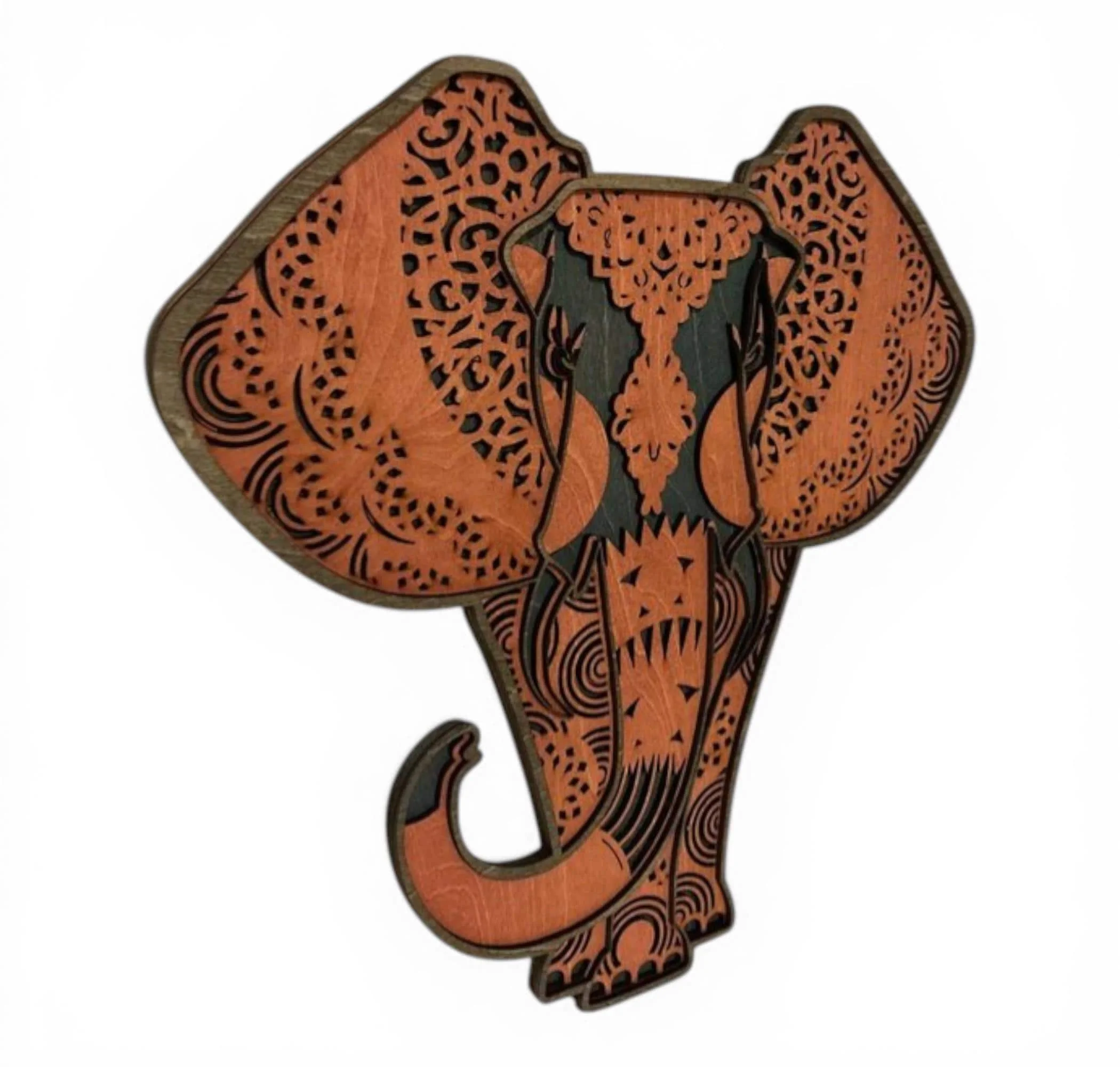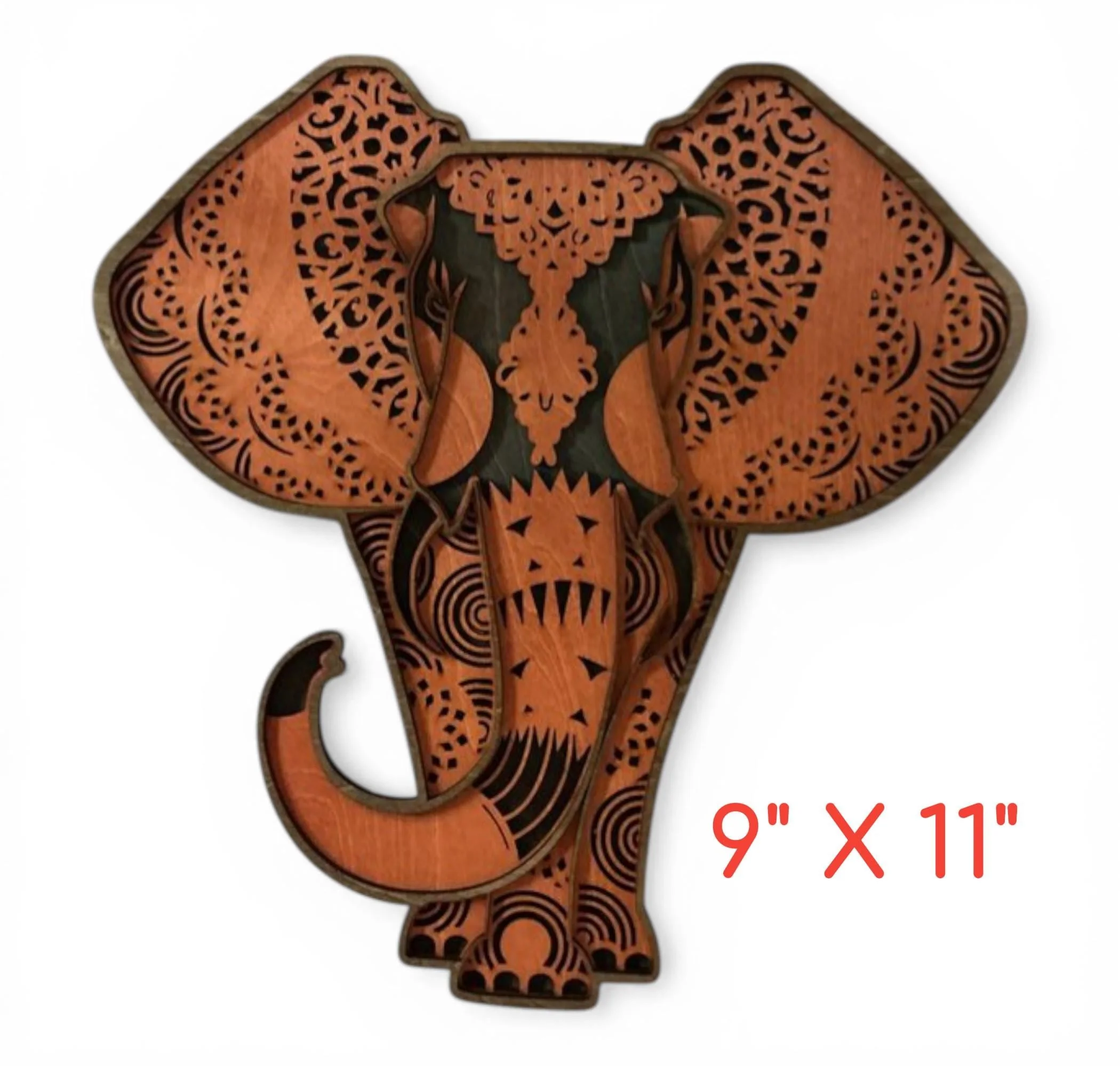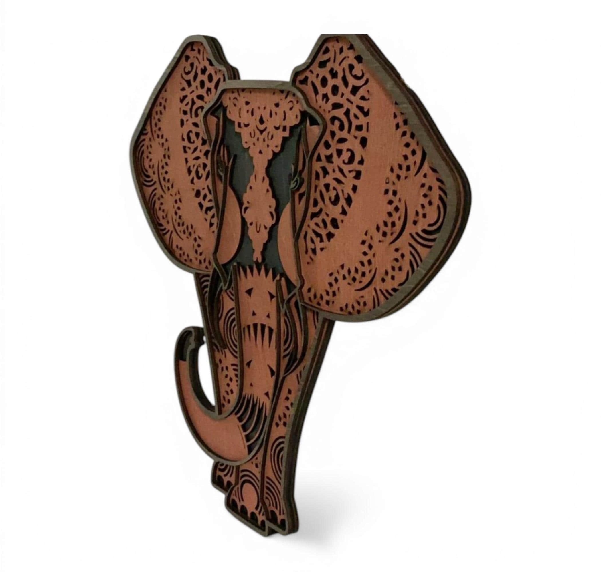 Layered wood animal wall art featuring a beautifully detailed elephant, designed to bring rustic wildlife charm into your home. Crafted from premium 1/8" wood, this multi-layer piece creates depth and dimension that makes the artwork stand out in any space. Each layer is precision laser-cut and hand-finished to highlight the natural beauty of the wood and enhance the overall design.