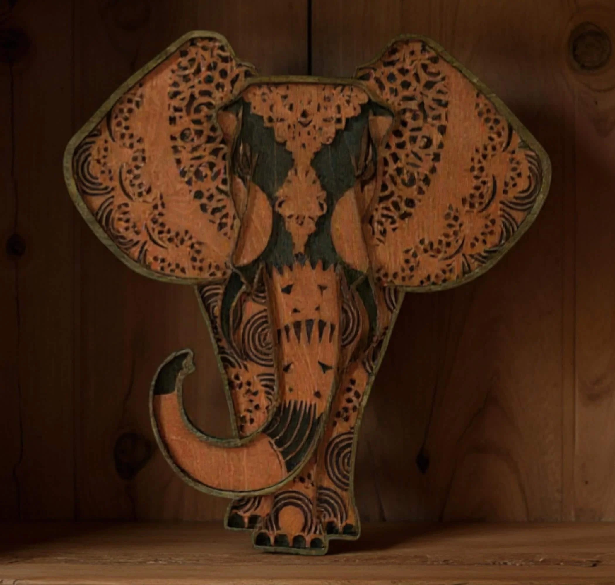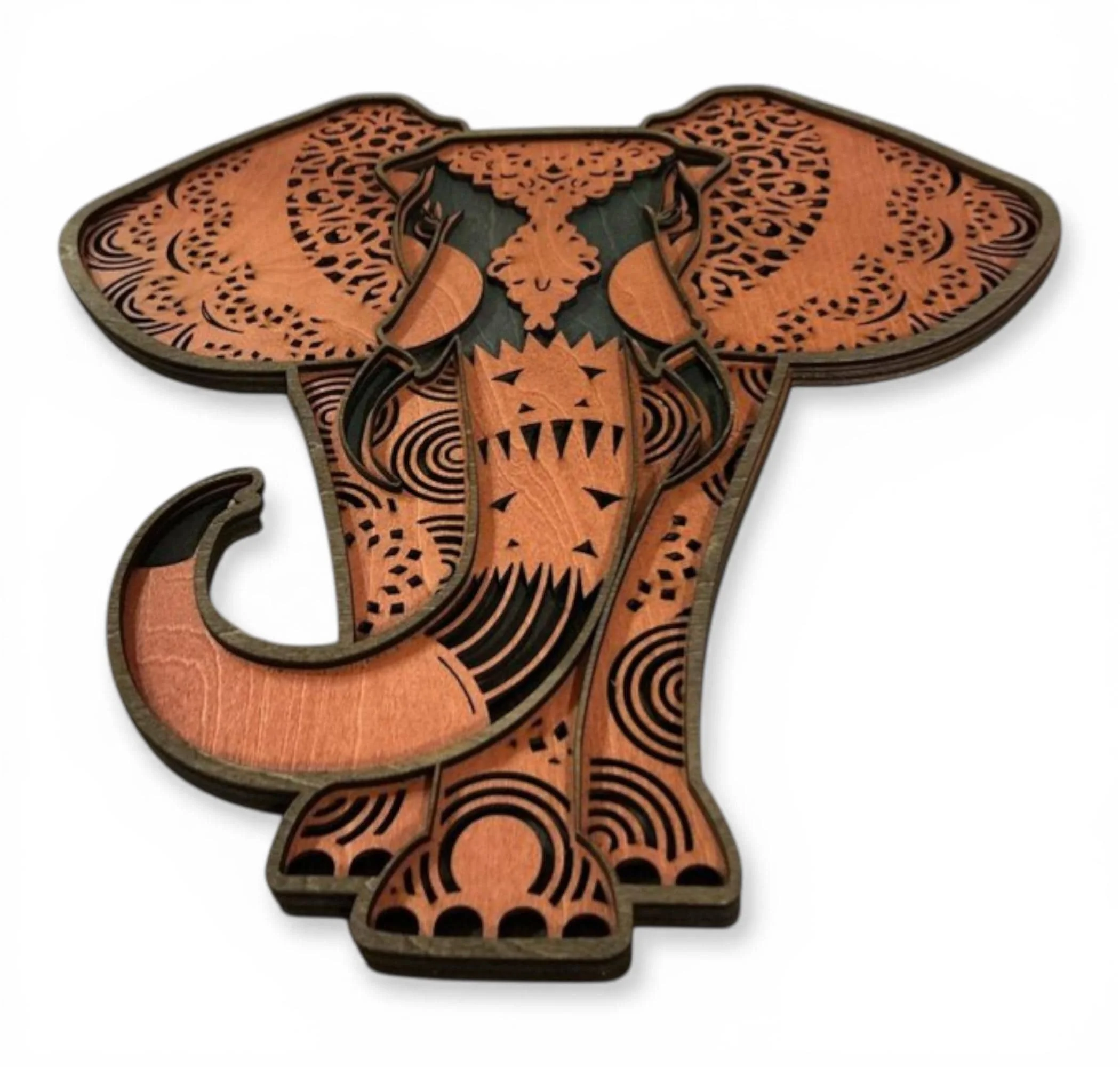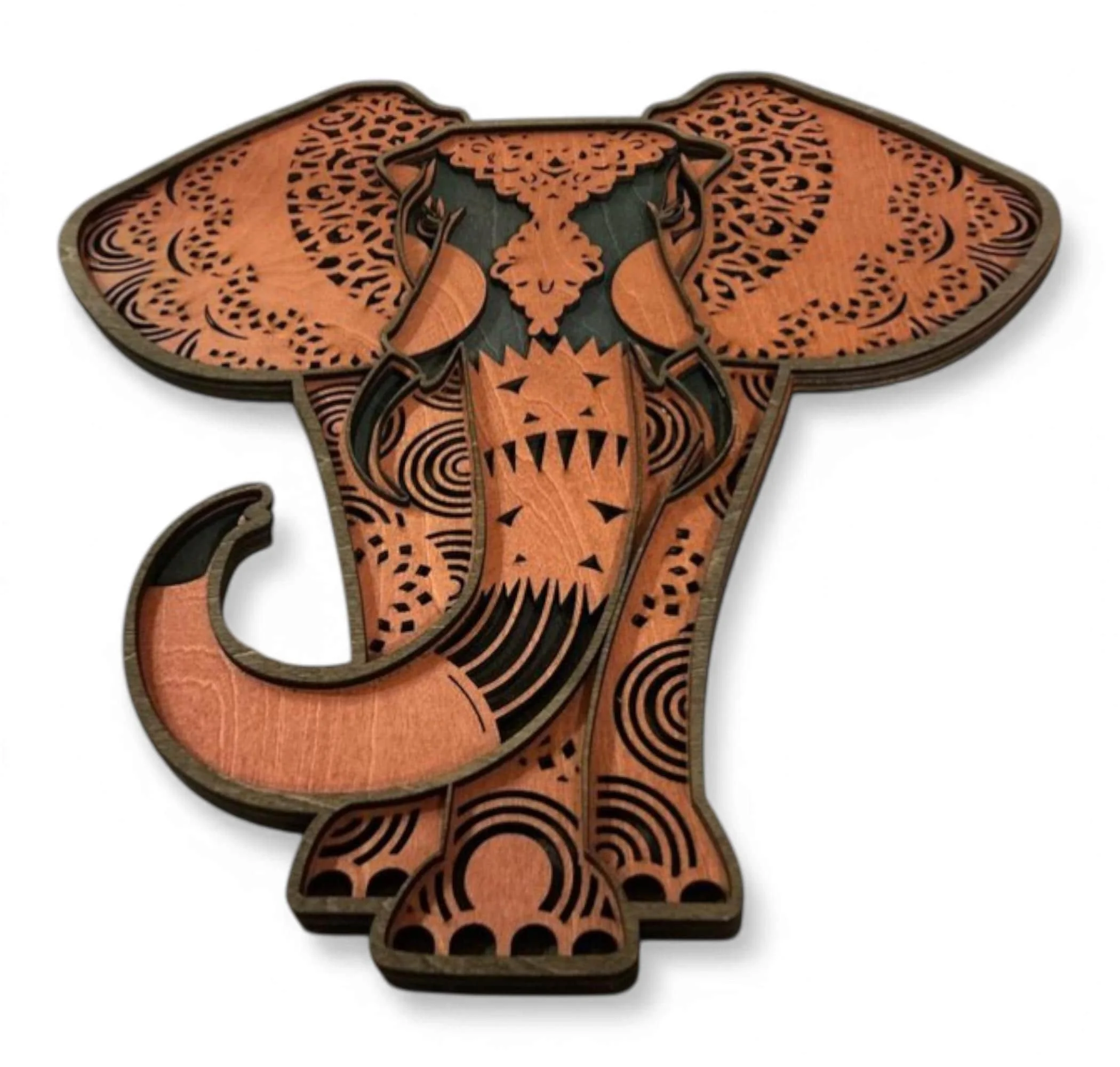 Layered wood animal wall art featuring a beautifully detailed elephant, designed to bring rustic wildlife charm into your home. Crafted from premium 1/8" wood, this multi-layer piece creates depth and dimension that makes the artwork stand out in any space. Each layer is precision laser-cut and hand-finished to highlight the natural beauty of the wood and enhance the overall design.